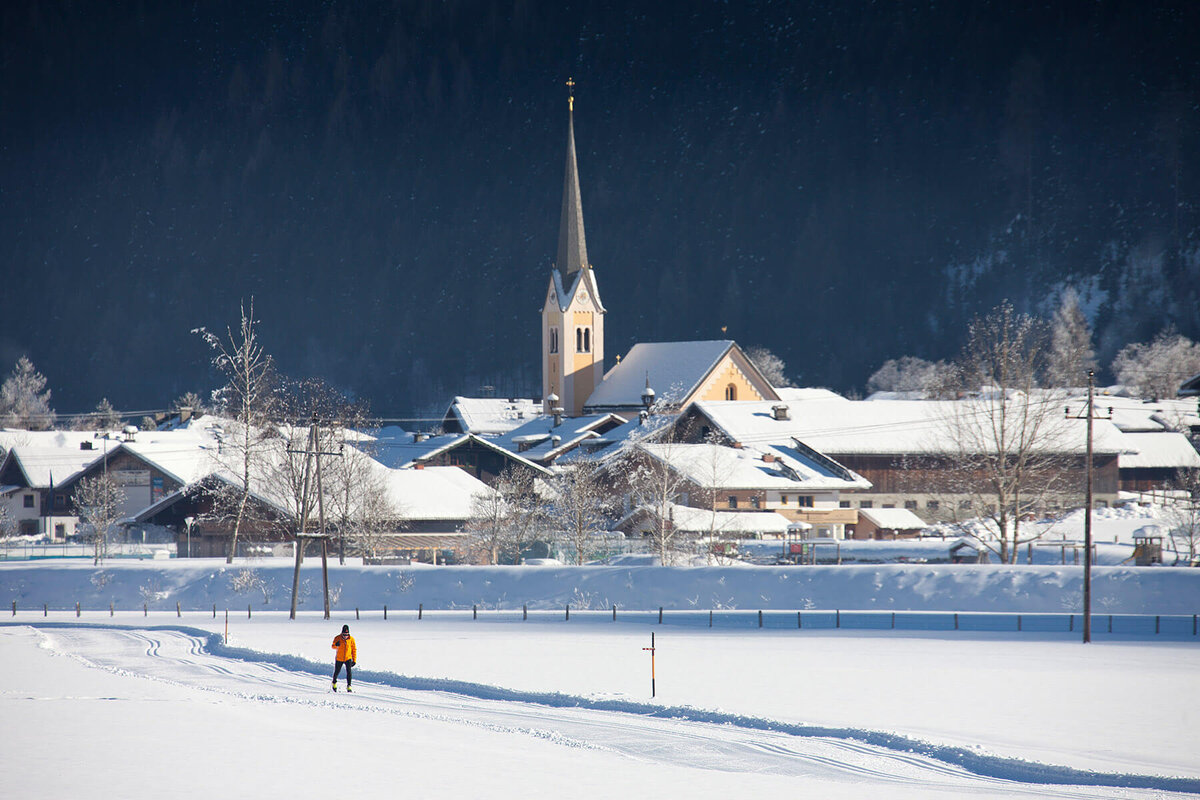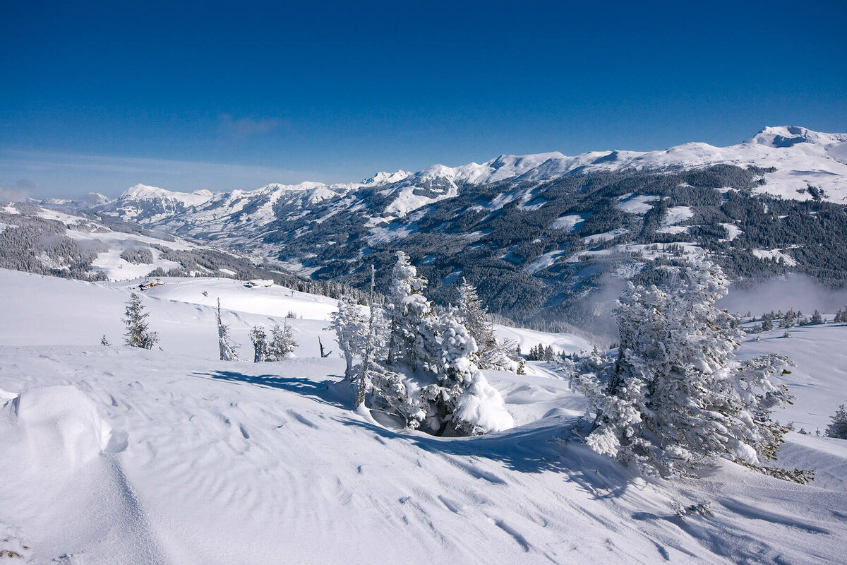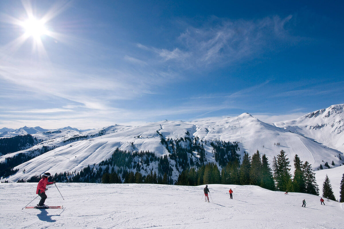 Skigebiet Pass Thurn: Schneebedeckte Hänge, familienfreundliche Pisten, Skikurse, Langlaufloipen und Winterwanderwege.br>